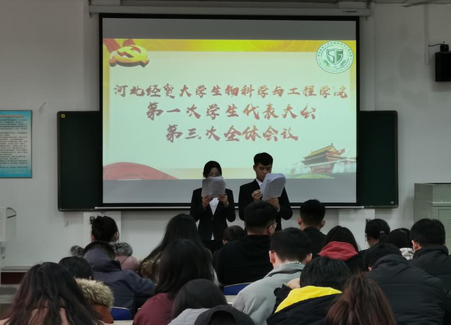 大会伊始,全体成员面向国旗共唱国歌,并宣读了会计学院的贺信,刘翠莲老师致开幕词。大会听取了18级学生会代表的工作汇报,并审议通过了《beat365官方网站第一次学生代表大会选举办法》、校级学代会代表资格审查报告、大会主席团和秘书长建议名单、《beat365官方网站第一次学生代表大会议程(草案)》、《beat365官方网站第一次学生代表大会提案情况报告》、《beat365官方网站2019届学生会工作报告》等多项报告及决议。伴随着19级学生会主席王磊的发言,生工学院本次学代会圆满结束。