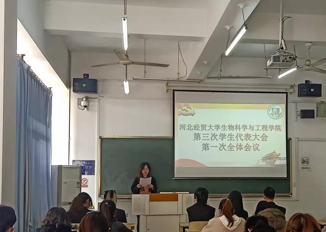 为明确学生会职责、加强学院建设,2021年11月18日中午beat365官方网站在B教209召开了第三次学生代表大会。生工学院团委书记刘翠莲老师及学生代表参加会议。