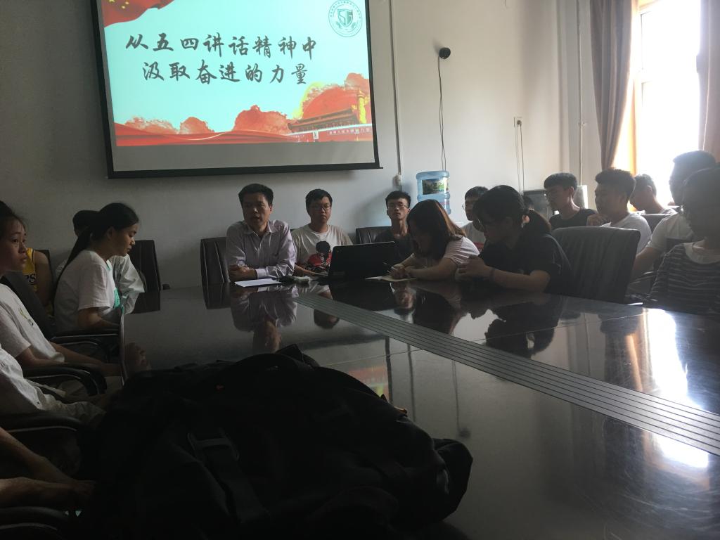 2019年05月17日,生工学院党委副书记曹一伟在第四办公楼434会议室组织开展了题为“从五四讲话精神中汲取奋进的力量”学生思想政治课讲授活动。2018级五十余名学生参加了此次活动。