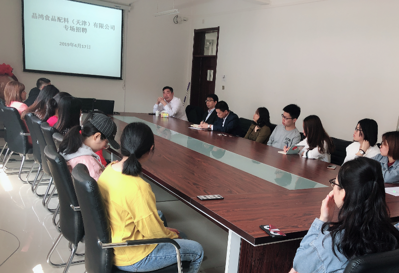 4月17日上午,beat365官网校友企业晶鸿食品配料(天津)有限公司专场招聘会在实验中心210会议室举行。此次招聘会由学院党委副书记曹一伟主持,院长赵士豪、副院长张香美以及部分大四学生参加了此次招聘会。