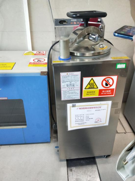 一行人来到华南理工大学食品科学与工程学院,该学院在易制毒、易制爆、病理性微生物等管控药品采购方面,学校集中办理了备案,取得使用资质。订购时,需要先通过学校系统申请,经学校同意后,方可从学校指定的厂家订购药品;实验室药品储存方面,固体和液体药品分类存放,易制毒和易制爆化学品存放在专用试剂柜中,采用“双人”管理政策;对于压力设备,学校集中办理使用资质,每个实验室派一名教师参加使用培训,经考试,合格后发合格证书,此教师对实验室师生进行相关培训后,方可使用压力设备;废弃物处理方面,实验室做好垃圾分类,学校定期组织专门厂家到实验室收集,统一处理。实验室消防方面,实验室统一配备了灭火器,消防桶,消防毯等消防器材,由学校定期组织人员对器材进行检查,并做消防培训。