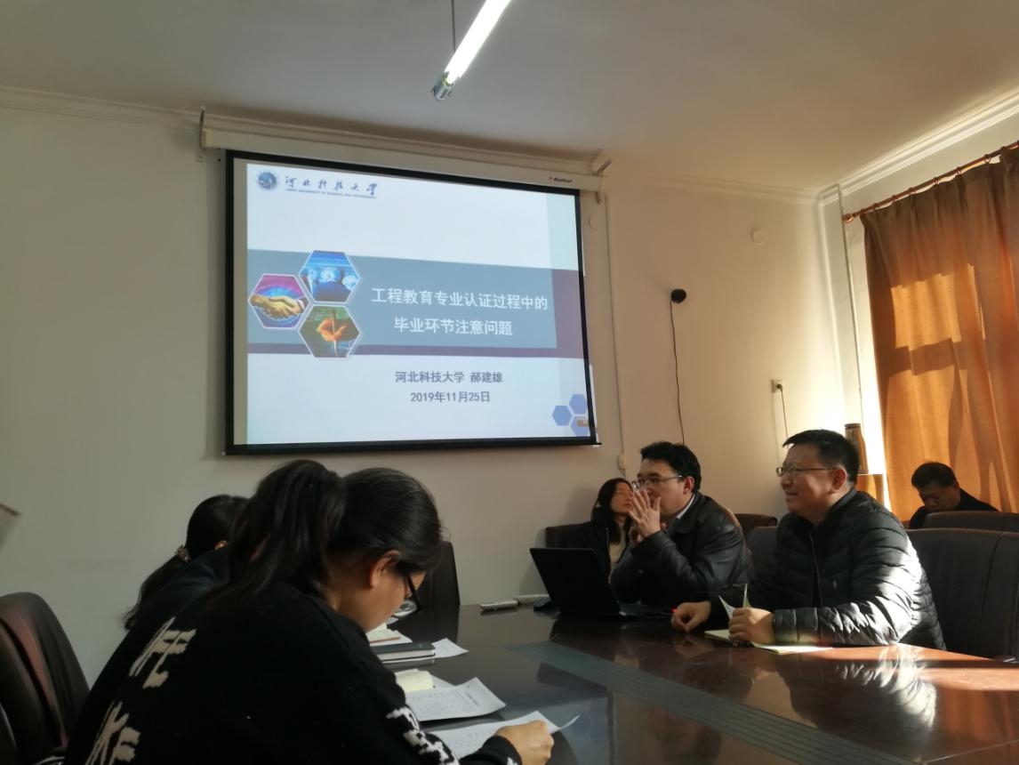 2019年11月25日,由教学评估与教师教学发展中心主办,beat365官方网站承办的本年度第224期教学沙龙顺利举行。河北科技大学beat365官方网站副院长郝建雄教授应邀做了工程教育专业认证过程中的毕业环节注意问题的教学沙龙,着重对毕业设计选题及写作做了交流分享,7个教学单位的50余名教师参加了活动。