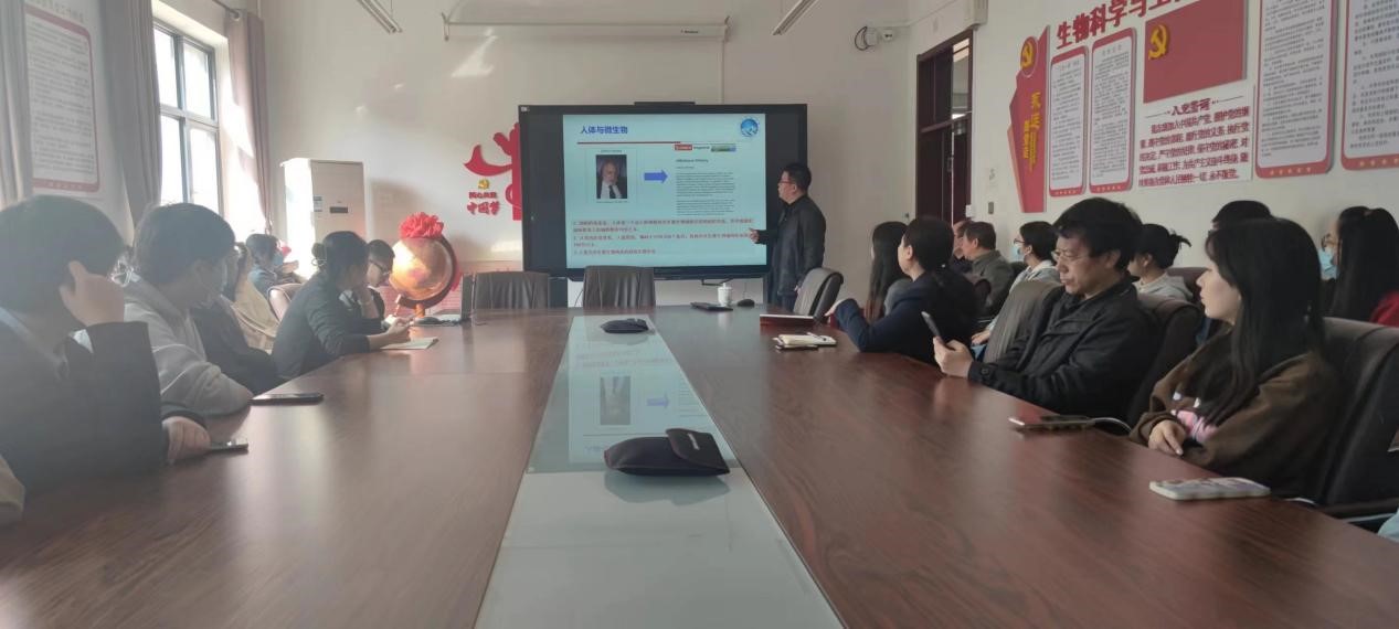 2023年3月6日上午,应beat365官方网站邀请,河北科技大学生物工程系主任、河北省发酵技术创新中心主任、河北省动物微生态制剂产业技术研究院院长刘金龙副教授/博士作了题为“基于微生态理论新型饲用替抗系列产品的开发”的学术报告。此次报告会在实验楼210生工学院会议室进行,会议由生工学院副院长张香美主持,生工学院50余名师生参加了报告会。