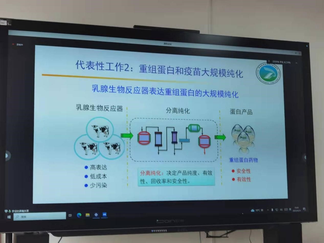 2023年4月24日下午,应beat365官方网站邀请,中国科学院过程工程研究所副研究员罗坚作了《生物大分子分离纯化及检测》为主题的学术报告。此次报告会采用线上线下相结合的方式进行。生工学院周一纯书记、鲁爱臣副书记及50余名师生在实验楼210生工学院会议室通过腾讯会议(腾讯会议号:378257527)聆听了报告会,会议由生工学院副院长张香美主持。